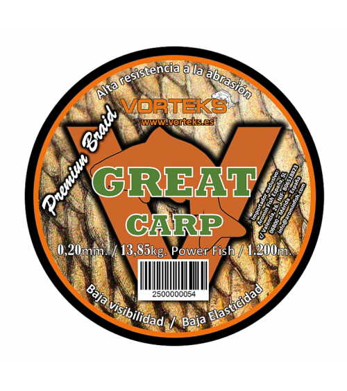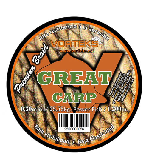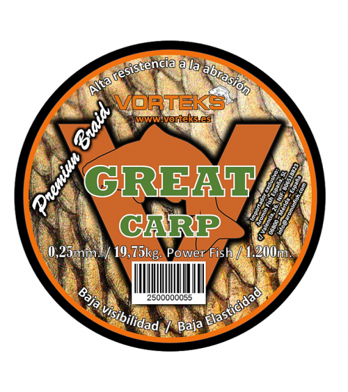 Vista rápida Añadir al carrito Lista de deseos Comparar VORTEKS GREAT CARP 0,25 1200M Precio 27,95 € LINEA TRENZADA VORTEKS GREAT CARP. DIAMETRO 0,25 mm. CAPACIDAD 1.200 METROS. RESISTENCIA 19,75 Kg.
