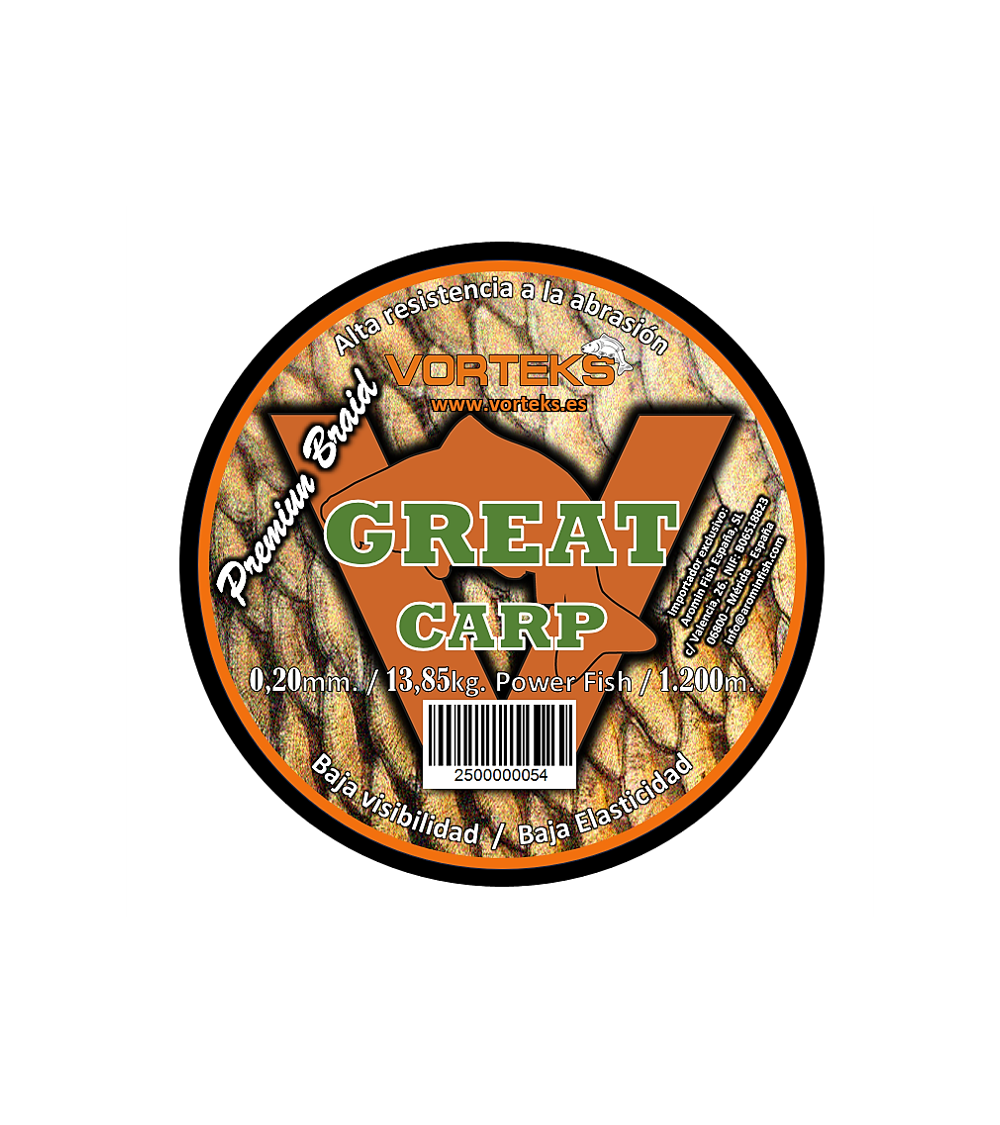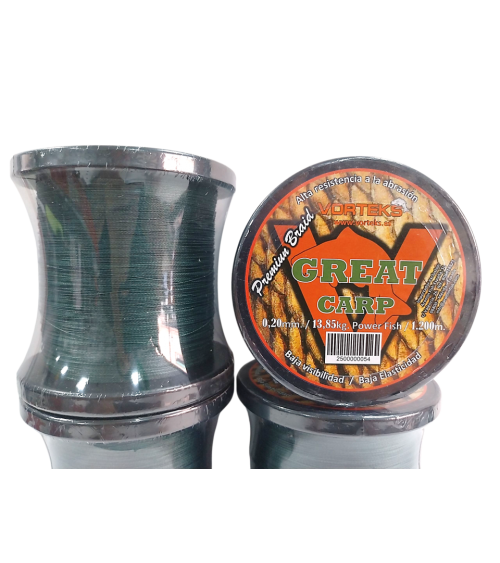 Linea trenzada Vorteks Great carp para la pesca del Carpfishing.