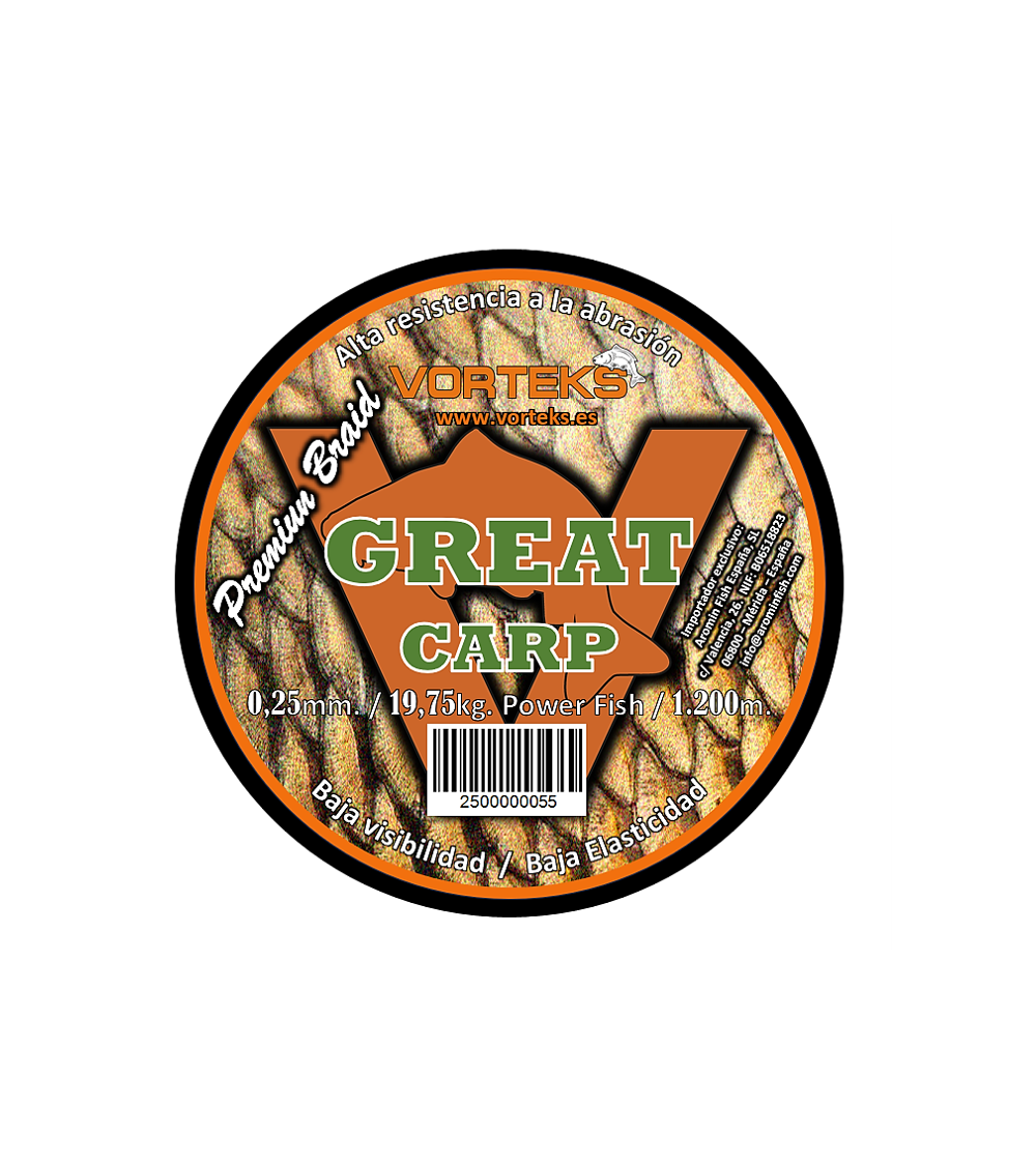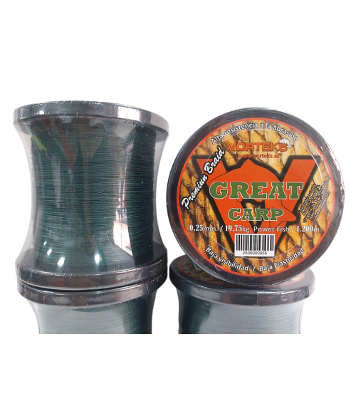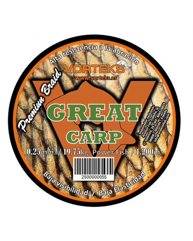 Linea trenzada Vorteks Great carp para la pesca del Carpfishing.